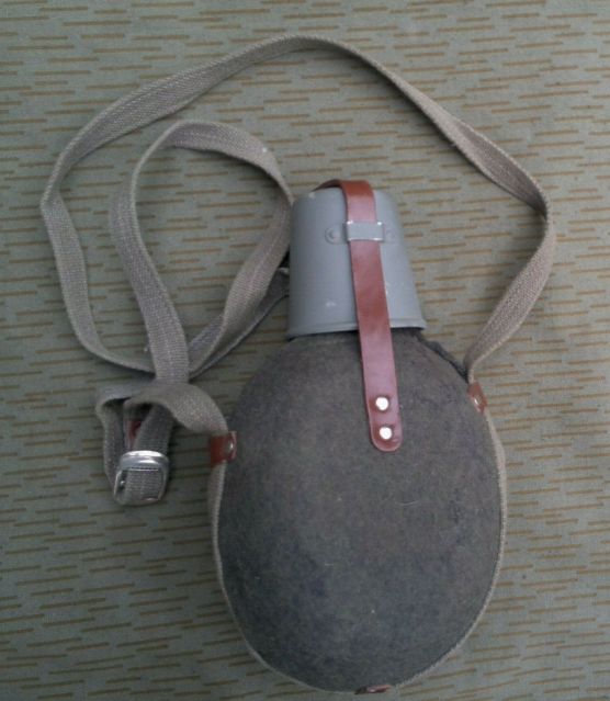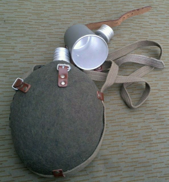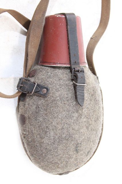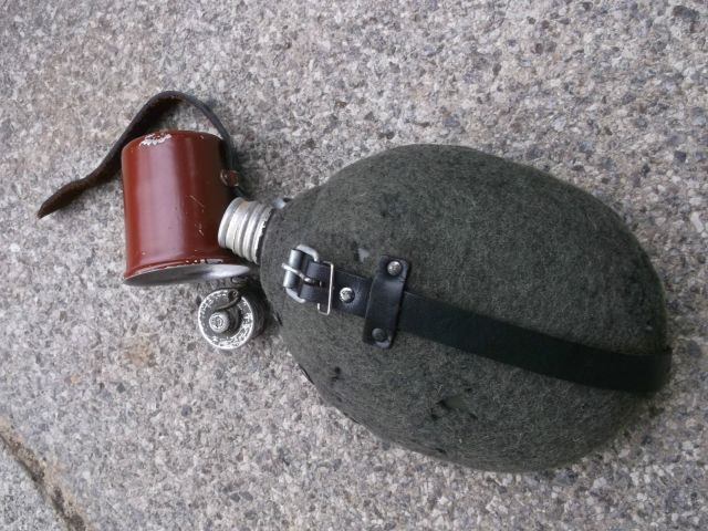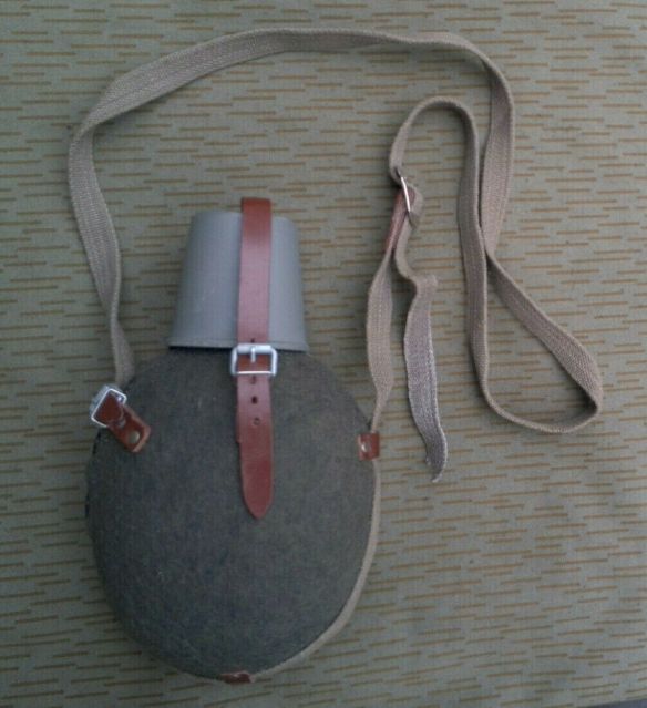 Welcome back! Today we are looking at another type of canteen used by the KVP, the forerunner to East Germany’s National Volksarmee. Going back at least as far as World War 1, the German military has had a practice of combat medics, Sanitäter, carrying a second canteen for use with patients on the battlefield, commonly referred to as the Sanitäter Feldflasche, or Sanitäter Trinkflasche. While the Sanitäter carried his own Feldflasche on his breadbag, he carried another on a shoulder strap that he could share with patients.